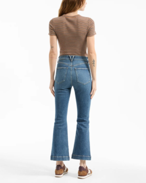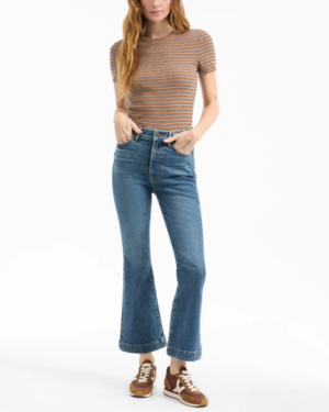 The Carson is a high-rise jean that is fitted through the hips and thighs with a cropped, flared leg. Made from the highest quality stretch denim, this pair offers a flattering fit and quick recovery. The perfect base to style with all your new knits and tops.