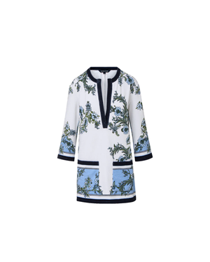 The essential spring tunic dress. Crafted from breathable stretch-cotton terry, the Briarcliff long-sleeve mini dress features a universally flattering, relaxed fitperfect for warm days and getaways. It includes front pockets and boasts a scarf-inspired botanical print in blue and white, plus navy trim for graphic contrast. Pro tip: Layer over swimwear as a chic beach cover-up. Care guide 80% Cotton, 18% Polyester, 2% Elastane. Turn inside out and machine wash cold in a mesh bag on a gentle cycle. Tumble dry on low.