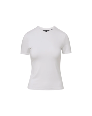 The Benedict Tee is crafted from a premium stretch blend for a slim, body-skimming fit. It features a clean crew neckline and short sleeves. Designed for everyday ease, this white T-shirt can be worn on its own tucked into denim or layered under blazers and cardigans. Care: 90% Lyocell, 10% Elastane. Machine wash cold.