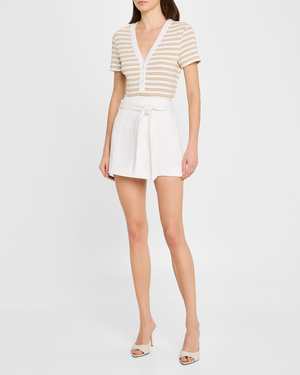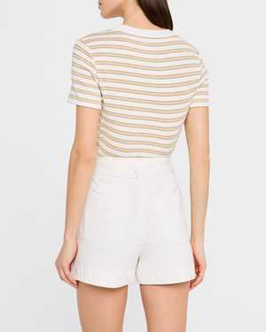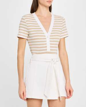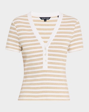 The Dekalb Tee by Veronica Beard features contrast piping and a subtle shine, making it perfect for both casual and dressy occasions. - Fitted cut - V-neck with button placket - Length: approximately 14.5" / 37.8 cm - True to size - 90% cotton, 8% other fibers, 2% elastane - Machine wash cold