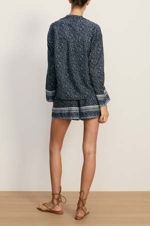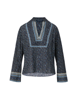 Bohemian ease. Crafted from ultra-soft, airy cotton voile, the navy Cyra tunic top features a universally flattering, relaxed fitperfect for spring days and getaways. It boasts allover micro florals and decorative border stripes at the neckline and cuffs. Pair with the coordinating Vilvaldi shortor layer over swimwear as a chic beach cover-up. 60% Cotton, 40% Viscose.