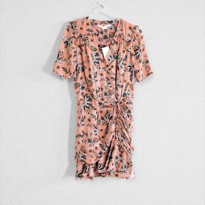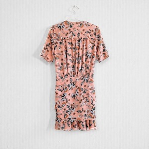 The Dakota Floral Dress by Veronica Beard features a floral print in mauve multi, pink, black, and metallic tones. Crafted from 91% silk and 9% metallic.