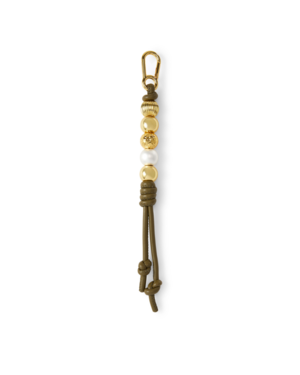 A chic little charm to elevate your favorite handbags. Crafted from vegan leather, the knotted design features three gold-toned beads for a refined touch. Its the perfect companion to any Veronica Beard handbag and pairs well with our paracord bag strapsmix, match, and make it your own. Material: 100% PU Length: 11"