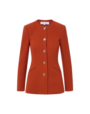 A tailored jacket with a clean, collarless look. Expertly crafted from an Italian virgin-wool blend in red, the Jessup features a darted waist and a subtly flared hem for flattering shape, finished with a jewel neckline. Slanted welt pockets and enamel-accented buttons complete the look. Style it buttoned with jeans or trousers for instant polish. - 96% Virgin Wool, 4% Elastane - Lining: 100% Cupro