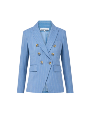 The bestselling Miller dickey jacket, now in pinstriped blue. Expertly tailored from midweight stretch-viscose suiting with a slub texture and slight sheen, it features a double-breasted silhouette with a slim, modern fit. Wear it with the matching Heyser pant for an effortless power suit, or switch in a dickey for even more styling options. - 98% Viscose, 2% Elastane - Linings: 100% Viscose and 95% Polyester, 5% Elastane