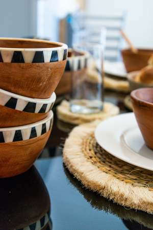 This set of four placemats is crafted from natural seagrass. Each placemat is handmade in Haiti by artisan Fredonar, utilizing traditional crafting techniques. The woven seagrass forms a circular pattern, finished with a fringe detail. Due to the natural materials and handmade construction, variations in color, shape, and texture are inherent to the design. Set of four placemats, each 14.5" in diameter. Constructed from all-natural, sustainable seagrass. Handcrafted by Fredonar in Haiti, supporting traditional artisanal work. Natural variations in material and construction are expected.