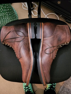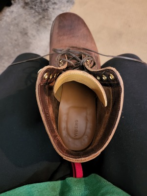 Viberg Service Boot size 9e US / 8e CAN / 42e EU in Rowdy Dachshund. Brand new in box. Very nice dark brown pull-up leather with lighter undertones and darker overtones. Beautiful boot, just slightly too big.
