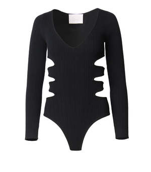 The V Neck Bodysuit in Black by Victor Glemaud is a long sleeve bodysuit, featuring side cut outs at the waist. Pair back to a pleated midi skirt or tailored trouser. - 100% Merino Wool