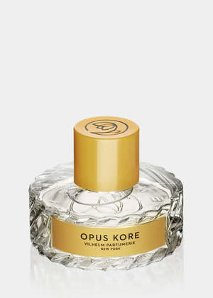 Vilhelm Parfumerie's Opus Kore Eau De Parfum. Persephone had been warned there was a price to pay for her otherworldly love, so when she returns to the living, she brings a gift: springtime. A bracing gust of Sicilian lemon and acai blossoms into raspberry blossom, pink magnolia, and violet leaf, followed by the sensuality of sandalwood, skin musks, and crisp amber.