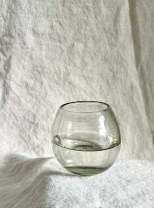 Our Ronde Glass is a perfect fusion of artistry and functionality. With a mid-century design, these Roly Poli glasses are blown free-form without a mold, which makes these pieces so special. They are designed for comfort and fit nicely in the hand. Kindly note: Due to the handmade nature of this item, there will be variations in design and size, as well as slight imperfections, possibly in the form of air bubbles, black specks, pontil and/or hand-tooling marks, and glass or color pattern irregularities. These imperfections are an attribute of handmade craftsmanship. Size: Approx. 3" Dia x 3" H - Set of 2 - 100% Recycled Glass - Food safe - Size and shape will vary approximately 1/2" from piece to piece.