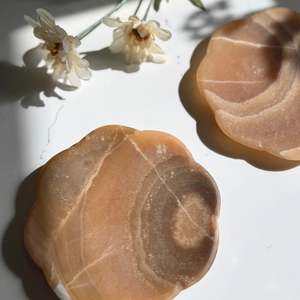 Handcrafted by skilled artisans in Mexico, this piece elevates any space with its stunning natural texture and subtle scallop detail edge. The felt pads protect table or countertop from scratches. - Size: 5.75" Diameter - Material: Onyx - Hand wash with mild soap; avoid harsh abrasives to preserve best condition. Made in Mexico.