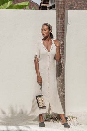 This elevated wallet features genuine leather detailing and cane webbings along with ample storage space. The natural elements of this bag combine beautifully to create a modern and bohemian feel. Each bag is handmade by our Balinese Artisan Partners and tells a story of craft, culture and innovation. Size 9"L x 5.5"W Materials Rattan Leather