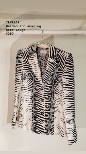 Beautifully beaded zebra print blazer in perfect condition. Weighted slightly due to beading. Size 44 / 46
