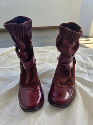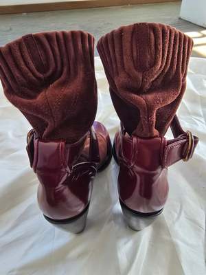 Vintage Y2K Marc Jacobs boots in burgundy suede and patent leather. Great vintage condition. Marked size 39.5 with a 3.5 inch heel. MEASUREMENTS (in inches) Marked Size 39.5 3.5 in heel MATERIALS Leather, suede All items are FINAL SALE. Vintage pieces are pre-loved and may come with minor flaws; condition will be noted in description.