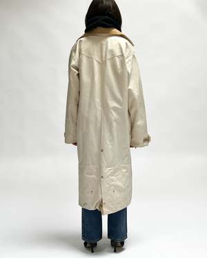 Vintage J Peterman beige cargo horse riding duster with pocket and snap detailing. MEASUREMENTS (in inches) 48 in bust 48 in waist 48 in hips 44.5 in length MATERIALS 100% Cotton