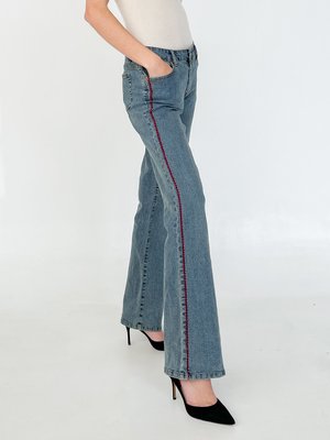 Vintage low rise baby flare denim. Low rise fit. Embroidered side detail. Front and back pockets. Stretchy feel. SIZING: Tag: 7/8 Fits: S 31" waist 8.5" rise 36" hip 32" inseam MATERIAL: 55% ramie 25% cotton 18% poly 2% spandex