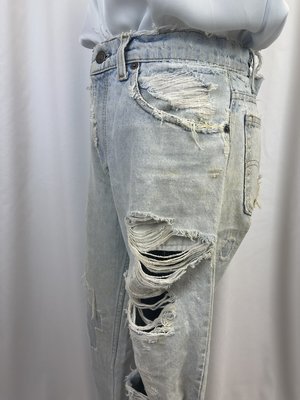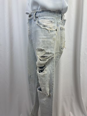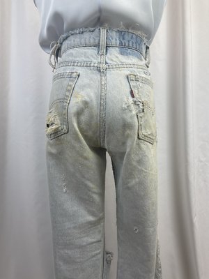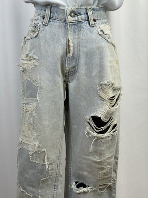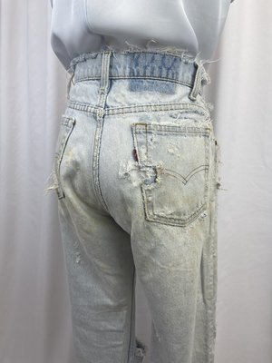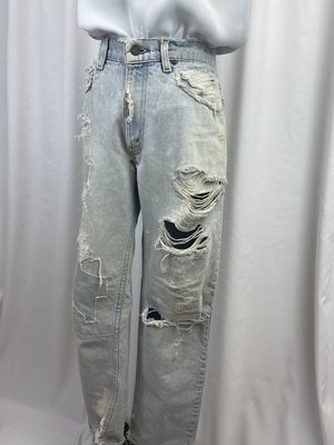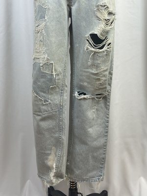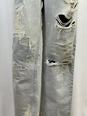 Vintage Destroyed Levi's Straight Leg Denim (28) SIZE: 28 BRAND / ITEM NAME: Vintage Destroyed Levi's Straight Leg Denim (28) COLOR: blue CONDITION: perfectly worn in - fragile vintage piece, collectsor's item MATERIAL: 100% cotton Measurements: 32 waist (runs narrow through thighs, mens fit) | 10.5 rise | 29 inseam