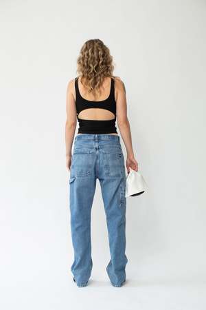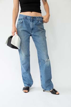 Slouchy denim is where it's at! Modern size: M 100% Cotton Note: Hole on left knee Size fit: Waist: 33" Hips: 40" Rise: 11.5" Inseam: 33"