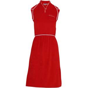 White tubular piping structures the silhouette, echoing athletic uniform logic while reinforcing seam geometry and visual contour. The Foxmoor terry cloth day dress exemplifies mid-20th-century American domestic leisurewear, channeling the evolution of textile-utilitarian design during the 1970s into a garment that merges comfort-centric engineering with chromatic articulation. Foxmoor, a department store and mail-order catalogue mainstay, built its brand identity around suburban functionality, specializing in garments that blurred the lines between resortwear, casual utility, and machine-washable daywear. Within this framework, the dress in question reveals itself as both a historical artifact and a textile-driven response to the cultural climate of late postwar Americaan era in which womens apparel increasingly prioritized self-styled ease, synthetic maintenance reduction, and transitional versatility across domestic and semi-public spheres. Constructed as a sleeveless, elastic-waist terry cloth day dress, the garment incorporates a short mock collar terminating in a piped V-slit placket secured by a four-hole button, contrast piping around the armscyes and pocket edge, a curved chest patch pocket, and a slightly flared skirt falling from an internal elastic waistband. The construction methodology reflects industrial U.S. sewing logic of the late 1970s to early 1980s, with lockstitch assembly, overlock seam finishes, and piped edge treatments that reinforce the garments shape and chromatic structure. The contrast white pipingcut as tubular knit bindingencases the collar, sleeves, placket, and hemline with clean integration, executed with high precision particularly at curved points and armhole transitions. This piping treatment functions not merely as a visual accent but as a formal element organizing the garments visual geometry, echoing the seam architecture of varsity and early athletic uniforms. Patternmaking reflects a minimal-panel engineering logic, with extended shoulders forming mock sleeves, a simple curved bodice contour achieved through princess-style slanted seams rather than darts, and a one-piece or gored skirt attached at a gently raised natural waistline. The elastic waistband is encased using a tunnel method, turned inward and stitched cleanly, allowing dimensional flexibility while maintaining an uninterrupted visual profile. The mock collar is constructed from a folded stand piece, stabilized likely with interfacing, and the necklines placket is stabilized to prevent distortion, suggesting subtle use of internal tape or fusible reinforcement. The hem features a curved side splitbound in matching pipingrequiring tension-controlled stitching and clean edge clipping, particularly in the dense pile of the knit. Textile analysis identifies the fabric as a warp-knit terry, also referred to as terry velour, composed of 65% polyester and 35% cotton. This blend optimizes dimensional stability, colorfastness, and reduced wrinkling, while retaining the moisture-absorbent qualities essential for post-bathing, poolside, or spa contexts. The naps uniformity, soft hand, and sheared finish on the face are indicative of raschel knitting followed by shearing and calendaring, yielding a plush velour effect while retaining the functional looped base structure on the reverse. The estimated GSM range of 220250 places it within the ideal density for resort garmentslight enough for warm climates, yet visually substantial. The warp-knit structure further enhances vertical recovery and minimizes skew, distinguishing it from the more elastic, less dimensionally stable weft-knit terry. Compared to French terry, traditional velour, and jacquard towel fabrics, the Foxmoor textile combines attributes across these typologiesachieving a plush visual character while preserving breathability and structural resilience. Heritage knit analogs include traditional towel velour used in high-end robes and spa loungewear; warp-knit velour applied in 1970s resortwear; and French terry in its loop-back, uncut formalthough the Foxmoor version is distinctly more tailored in visual logic. Textile mills producing comparable qualities include Haussmann GmbH (Germany), known for terry velour in premium leisurewear during the garments probable era; A & B Textiles (UK), specializing in warp-knits with precision shearing; Tessitura Taiana Virgilio (Italy), whose plush synthetics evoke similar tactile intentions despite being more commonly associated with velvet and elastane resort fabrics; and Penn Textile Solutions (Germany), known for loop-stabilized, high-stretch technical terry knits. Each mill reflects a commitment to visual softness coupled with engineered performancea textile philosophy in line with the Foxmoor garments goals. Sewing technique and execution exhibit strong control over the inherent difficulties of velour pile fabrics. Seamlines are flat and symmetrical, with consistent stitch tension across the napped surface. The piping is inserted flush without distortion, particularly at tension-sensitive curves such as the collar and armholes. The patch pocket, with shaped lower corners and single-fold piped top edge, is precision-aligned, its piping ends cleanly enclosed to prevent fray and maintain continuous visual rhythm. The hem and side splits are neatly rounded, with no drag or asymmetrydespite the fabrics directional nap and inherent bulk. The elastic waistband shows no visible puckering, implying careful tension distribution or differential feed during insertion. Overall, the garment demonstrates proficient handling of a fabric prone to grain slippage, seam thickening, and nap crusheach challenge met through deliberate engineering choices and efficient construction logic. The visual language of the dress draws from mid-century housecoats, beach cover-ups, and early postwar spa garments, merging them with the visual claritys of 1970s athletic-casual silhouettes. The white piping recalls vintage tennis