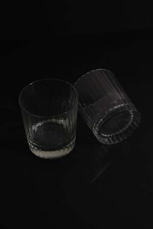Crafted in transparent pressed glass, these tumblers feature a vertical ribbed pattern that catches and refracts light beautifully. Each piece has a subtle weight and sturdy base, offering both visual texture and balance in the hand. Will sell in sets of 2. Perfect for serving water, cocktails, or juice, these stackable tumblers lend understated elegance to everyday use. Height: 3 3/4 in. Base Diameter: 3 in. Although we do our best to ensure each item is in excellent condition, please respect any minor flaws due to the item's vintage character.