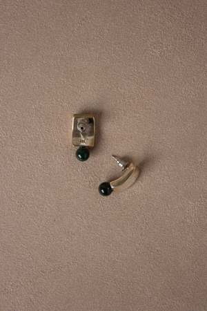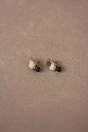 A pair of sterling silver rectangular earrings featuring a slightly curved profile and a dark green agate drop. Stamped .925. Vintage - some imperfections may be present due to age. Please review images carefully.