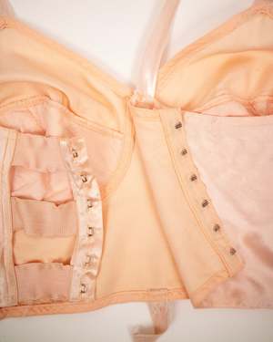 product details 1940s/50s great condition era: 40s/50s fabric content: colour: dusty pink condition: good measurements band width: 5.5" band (around): 30" - 33" cup width: 8" models measurements shoulder - shoulder: 17" bust: 33" waist: 25" hip: 37" height: 5'10" **all website vintage can be viewed in person with 24 hr notice. vintage items may be returned for store credit only - no refunds**