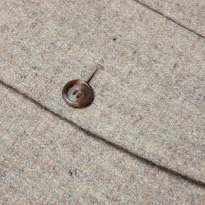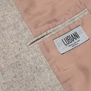 This Lubiani blazer exemplifies Italian tailoring, merging structured elegance with a textured wool blend. Featuring a single-breasted, two-button design, structured shoulders, and a double-vented back, it balances professional and casual tailoring. The muted beige-gray fabric with a subtle weave enhances versatility, complemented by a fully lined interior for comfort. Constructed with a half-canvas method, it offers a natural drape and durability. Details include notch lapels, flap pockets, and precise stitching. The textured wool blend aligns with Italys textile tradition, providing a soft yet structured feel suitable for transitional seasons.