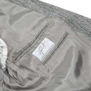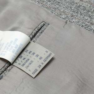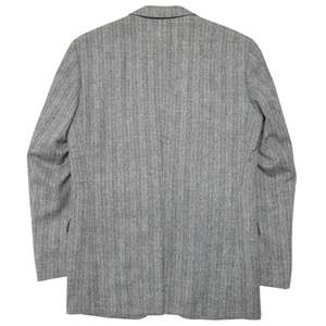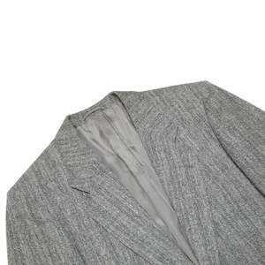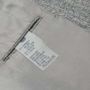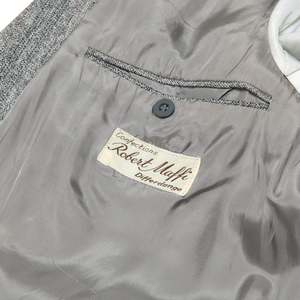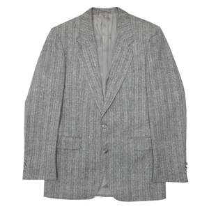 This vintage blazer from the late 1970s showcases the craftsmanship of European tailoring, attributed to the Robert Maffi label. Designed as a structured, single-breasted blazer, it features a two-button front closure, medium-width notch lapels, structured shoulders with light padding, and a fully lined interior. The fabric is a mid-weight blend of 60% virgin wool, 25% polyester, and 15% viscose, offering warmth, durability, and breathability. The textured weave includes fine red pinstripes on a gray-black base, adding depth to its sophisticated aesthetic. Tailoring details include precise pad stitching on the lapels, reinforced stitching at stress points, and a cleanly finished interior lining. This blazer reflects the minimalist European tailoring traditions of its era, making it a timeless piece for vintage suiting enthusiasts.
