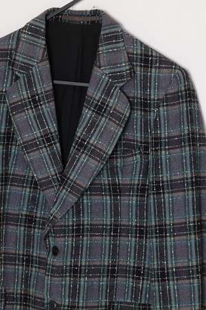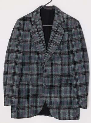 We are currently operating in a pre-scaling phase, during which the scope of our vintage archive has expanded beyond what can be listed at human speed. Only a token fraction of the inventory is visible online, not for lack of supply, but because an inconvenient commitment to perfectionism. The practical solution is to request access to our Google Drive. There is, incidentally, an upside to this arrangement: direct access, special attention, preferred pricing, and quantity-based considerations. New drops are added to the Drive on a daily basis, ensuring ample selection. All that is required is a reference to the image IDs. From there, we provide an elevated level of service: photos edited to approximate reality, additional images, and, where applicable, preferred pricing with quantity-based concessions. Bundles are where the value appears; the more pieces, the more flexible the pricing. After a half-decade sabbatical from fashion, I'm cautiously resurfacing & I felt it was time to reconnect. I moved to Europe a few years ago & began collectsing vintage with the field discipline of an anthropologist & the denial of a high-functioning hoarder. I currently have over 100,000 pieces sitting in a warehouse, because moderation has never been my strong suit. What began as compulsion is now a side project. I'm firmly in the pre-revenue chapter of the memoir - 1,000 sales, & high morale. The broader archive skews larger, stranger, & more historically pointed-East & West German rarities, bureaucratic glamour, Soviet institutional wear, industrial archaeology-rich in Trevira, Diolen, Terylene & mid-century state textile programs, & an elegy in garments from the DACH region & beyond. The collectsion is mostly a Cold War capsule wardrobe, institutional tailoring, state-issued, regional cooperatives & rural ateliers, white labels from the department store era, exceptional knitwear, socialist leathers, the zenith of Parisian fur craft, selectively preserved tweed skirts, rare 1960s mod, exaggerated '70s collars, German-cut blouses, unusually constructed denim, essentially the entirety of the 1970s, when even institutional garments had the decency to be well made. If integrity were woven, you'd find more of it in a 1978 poly-wool blend than in most of today's designer runways. Eventually, this evolves into a full-scale operation-complete with the token NYC storefront for aesthetic credibility. Given that about 70% of you are ordering from New York, it seems reasonable to ship our 50 pallets there & open a labyrinth of "true vintage" to get lost in. Scaling, of course, requires capital. I'm well aware that most of you don't have any, but statistically speaking, out of the millions who drift through here, it is statistically probable that one of you possesses both interest & solvency. Type us into Google. Everything is there, including a contact form. SUNDAZED & OUTSIDE SOCIETY Measurements: Chest 52 cm, Length 78 cm, Shoulder 44 cm, Sleeve 61 cm Inches: Chest 20.47 in, Length 30.71 in, Shoulder 17.32 in, Sleeve 24.02 in This is a late twentieth-century single-breasted tailored blazer in a multicolored plaid suiting with a fully lined interior and moderate shoulder build. The production date is best placed circa 1985 to 1995, with the broad outline, lapel scale, body length, and easy chest all sitting squarely in the familiar territory of late-century ready-to-wear tailoring, that inexhaustible archive of garments made for office, showroom, and department-floor endurance rather than posterity. The shell appears to be a synthetic-dominant or blended suiting woven to imitate tweedy irregularity, paired with a smooth black lining and assembled through standard commercial tailoring methods rather than bespoke or couture procedures. Its importance lies less in rarity than in its competent expression of late-century oversized tailoring and plaid surface design, where industrial production borrowed just enough from tailored traditions to sell authority by the hanger. No legible maker, composition, or size identification is retained in the examined record, so attribution remains structural rather than branded. That is often healthier for the catalog. Primary Materials, Textile Structure and Fabric Performance The shell cloth presents as a medium-weight woven suiting with a textured, slightly granular hand and a plaid layout built from teal, muted mauve, dark navy or black, and off-white linear accents. The face suggests a synthetic-rich or blended yarn system engineered to simulate the visual depth of woolen tweed without the same loft, spring, or thermal character. The lining is a smooth black filament fabric, likely acetate, polyester, or a related lining-grade synthetic, selected for slip rather than durability. Interfacing appears present through the front edge, lapel, and upper chest in a form consistent with fused or lightly structured ready-to-wear support rather than hand-padded canvas. The shell retains enough body to hold lapel roll and shoulder line without collapsing, which indicates serviceable tensile stability and reasonable seam support. Minor flattening through handled areas and the general hand of the cloth suggest ordinary wear and pressing history rather than exceptional preservation of original finish. Construction Method, Pattern Development and Production Discipline This blazer was produced through industrial tailoring with standardized patterning and workshop or factory assembly. The cut is regularized rather than individualized, and the seam planning follows commercial efficiency: single-breasted front, applied patch pockets, set-in sleeves, tailored collar and lapel unit, and a full lining inserted after shell completion. Stitching discipline is competent and consistent, with no evidence of hand-finished couture procedures, bespoke fitting revisions, or made-to-measure recalibration. The plaid has been managed with tolerable control across major zones, though not with the almost punitive p