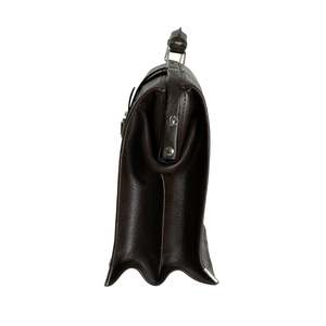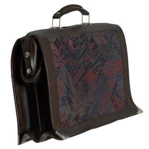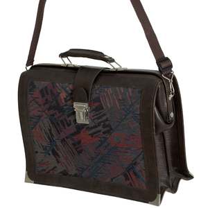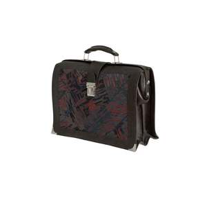 A 1980s briefcase built for professionals: gusseted, jacquard-accented, and industrially constructed with brutalist geometry and utilitarian flair. The design reflects a late-modernist approach to professional accessories, emphasizing functionality and durability. Key features include a push-lock clasp, dual-gusset expansion, and a detachable shoulder strap. The bag is constructed from synthetic leather panels with jacquard textile insets, providing both structural integrity and subtle aesthetic detail. Dimensions: Length 40 cm, Height 28 cm, Width 16 cm.