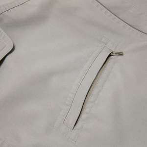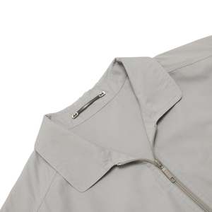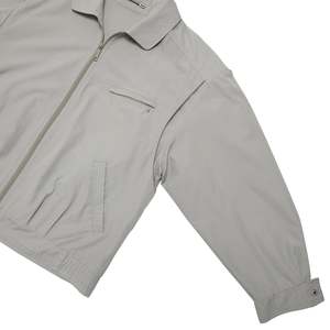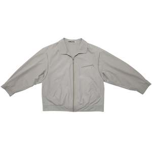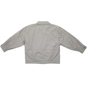 This vintage Harrington-style zip-front jacket embodies a blend of mid-to-late 20th-century workwear and sportswear aesthetics, offering a relaxed yet structured silhouette with a spread collar and functional pocket detailing. Designed as a transitional outerwear piece, it balances utility and sophistication, featuring a lightweight woven fabric in a muted gray tone. The construction reflects a heritage approach to tailoring, incorporating reinforced seams, durable materials, and precise finishing techniques. Crafted from a likely cotton-polyester poplin blend or a nylon-cotton mix, the shell fabric is plain-woven for durability, breathability, and a smooth, uniform surface. The poplin weave provides natural wind resistance without adding bulk, making it ideal for layering. The lightweight nature of the fabric ensures flexibility and comfort. A piece-dyed neutral gray tone enhances the classic and timeless look. The interior features a partial synthetic lining, reinforcing high-stress areas while offering a soft and comfortable wear experience. The jackets fit is relaxed, with a slightly boxy cut and a dropped shoulder seam that creates a vintage silhouette. Additional functional details include two angled welt pockets at the waist and a single zippered chest pocket for secure storage of small essentials.