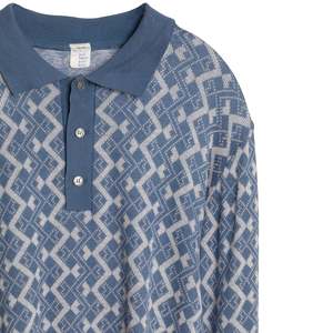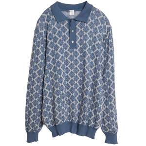 Sundazed (France) Argyle Interlock Knit Cuff Sleeve Polo Sweater Kyanite : L SOS | sundazed.io/products/sundazed-argyle-interlock-knit-cuff-sleeve-polo-sweater-kyanite-l Brand: Sundazed Origin: France Condition: Excellent Bespoke (no flaws) Look: Department: Men Tag: Size: L Color: Blue Fabric Type: Knit Material: Acrylic Composition: 100% Acrylique Pattern: Argyle Fit: Oversized Style: Polo Neckline: Collared Collar: Spread Sleeves: Cuff Sleeve Length: Long Cuffs: Ribbed Closure: Button Measurements (cm) Chest: 58 Length: 72 Shoulder: 42 Sleeve: 71 Hem: 36 SKU: 000357
