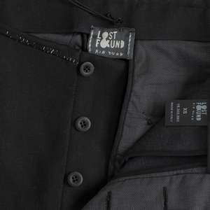 Lost & Found Ria Dunn (Italy) Knit Weave Ramie Wool Blend J Trousers Onyx : M SOS | sundazed.io/products/lost-and-found-ria-dunn-knit-weave-ramie-wool-blend-j-trousers-onyx-m Brand: Lost & Found Ria Dunn Origin: Italy Condition: New Vintage (mint condition or new without tags) Look: Formlessness Department: Men Tag: XS Size: S Color: Black Fabric: Woven Material: Wool Blend Composition: 62% Ramie 38% Lana Style: J Leg: Tapered Front: Flat Rise: High Body: Oval Waistline: Shaped Closure: Button Fly Pockets: Inseam Construction: Waist Dart Measurements (cm) Waist: 36 Outseam: 112 Inseam: 82 Opening: 16 SKU: 001104