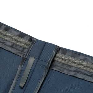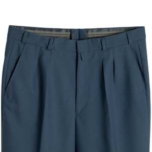 Joba Waghusels Bund trousers merge military utility with disciplined German tailoring, built for institutional longevity, precision, and structural integrity. These trousers exemplify the convergence of institutional utility and disciplined German tailoring, constructed with rigorous attention to engineering, textile durability, and structured silhouette retention. Given the label, Bund (short for Bundeswehr, the German armed forces), this piece aligns with military, governmental, or law enforcement dress regulations. Emerging from the legacy of standardized German uniform production, these trousers encapsulate the Bundeswehrs postwar sartorial ethosfunction-oriented, regulation-compliant, and precision-crafted for sustained wear in formalized state or military environments. Engineered for longevity and performance under institutional dress codes, the trousers articulate a silhouette defined by mid-to-high waist rise, double front pleating, and a slight tapercreating a conservative yet ergonomically sound fit. The pleated construction not only accommodates movement but also reinforces volume control and visual order. A reinforced waistbandinterfaced with synthetic stabilizers and internally fitted with gripper tapeensures stability, shirt retention, and structural integrity under prolonged wear. Wide belt loops accommodate regulation utility belts, underscoring the garments function-first orientation. Construction methodologies adhere to industrial standards, with stress zoneswaistband, seat, and pocket openingssecured via high-density double stitching and bar tacking. The waistband is reinforced using internal bias-bound finishing and concealed seam architecture, optimizing durability while eliminating raw-edge exposure. A heavy-duty hook-and-bar closure system, paired with a concealed metal zipperlikely sourced from high-reliability manufacturers such as YKK or Optiensures fastener integrity under repetitive strain. Hem finishing reveals a zigzag under-stitch, facilitating ease of alteration while providing anti-fray resistance. These techniques underscore the trousers engineering intent: durability without aesthetic compromise. Patternmaking aligns with traditional German military drafts, integrating center-back seams for modular adjustments and darted rear paneling to conform to seat contours without over-tightening. Side seam construction is double-stitched and overlocked, enhancing tensile strength while maintaining a clean interior finish. The inclusion of a single welt pocket with flap at the rear reflects functional security preferences commonly seen in service uniforms. The fabric selection further reinforces the trousers tactical pedigree. Composed of a tightly woven twilllikely a high-twist worsted wool or poly-wool blendthe textile exhibits diagonal ribbings indicative of a dense twill weave, offering abrasion resistance, wrinkle recovery, and a crisp drape suitable for year-round institutional wear.