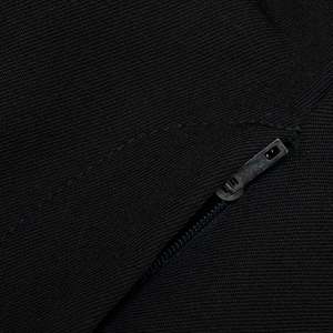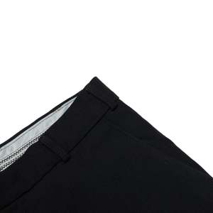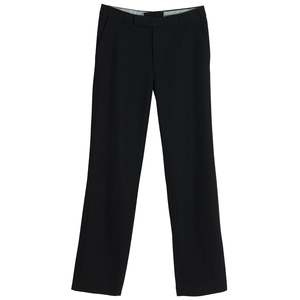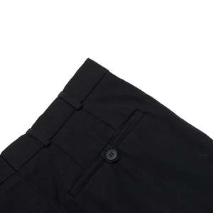 The flat-front wool-blend trousers, anchored by a GUTOS hook closure and satin-faced waistband, embody Germanic tailoring discipline and architectural restraint. Constructed with a lockstitch system and overlocked seam allowances, the trousers reveal industrial assembly executed with exacting care. The fabric is a 2x2 worsted twill, likely a wool-polyester blend, combining the technical properties of high-twist wool with the durability and wrinkle resistance of synthetics. This textile ensures high dimensional stability, excellent drape, and robust recovery under stressqualities paramount for tailored trousers subjected to repeated wear and pressing. The trousers are constructed from four main body panelstwo front and two backshaped through darts and curved seams. Seam integrity is exceptional, with lockstitched side and inseams internally serged, maintaining a balance between high-volume production and tailored finesse. Conceptually, the design adheres to utilitarian modernisman architectural claritys that avoids decorative excess in favor of functionality and psychological presence.