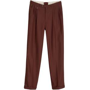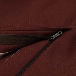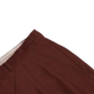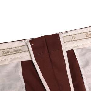 The rust-brown tone diverges from conventional palettes without forfeiting the garments compatibility with professional dress systems. The formal trousers by Zethadeem encapsulates the transitional logic of late 20th-century European tailoring, situated precisely at the convergence of classical menswear codes and post-industrial materials. The brand, while peripheral to high fashion circuits, belongs to a network of continental menswear manufacturers that supplied formal and semi-formal garments to department stores, public institutions, and professional service sectors across the DACH region. Though definitive origin is undetermined from branding alone, the language of compositionSchurwolle, Lana Vergine, and the prominent use of Trevirafirmly situates this garment within the post-functionalist tailoring matrix of German-speaking Europe, where wool-synthetic hybrids became foundational to institutional dress during the 1990s and early 2000s. The design intent adheres to formalwear orthodoxy: a mid-rise, double-pleated, cuffed trouser engineered for structured presentation, prolonged wear, and ceremonial utility. Its pleated front offers ease through the hips and upper thighcrucial for seated occupational settingswhile the cuffed hem adds visual weight to anchor the silhouette in line with European tailoring traditions. The waistband construction, featuring a full extension tab with hook-and-bar fastening and interior stabilizing button, enhances mechanical reliability and reinforces the formal character. Aesthetically and structurally, the trousers negotiate tradition and technical performance without recourse to superficial ornament. Construction follows a disciplined semi-industrial tailoring protocol, characterized by double-needle lockstitching along high-stress seams, overlocked interior allowances, and cleanly executed fly construction using a French seam technique with internal guard flap. The waistband is fully curtained with a woven cotton facing, integrated with decorative branded tapeindicating brand identity without compromising structural function. Hem cuffs are blind-stitched and measured to approximately 4.5 cm, maintaining historical congruence with 1990s tailoring. Bartacked slash pockets, a jetted rear pocket with button loop, and a discreet branded metal tab at the waistband serve as minor distinguishing markers within an otherwise institutional design language. Pocket bags are internally reinforced, and seam edges are tightly overlocked to withstand repeated laundering and frictional stress from daily movement. All components confirm the garments alignment with standardized formal production intended for scaled professional distribution. Textile composition reinforces this trajectory: a 55% Trevira polyester and 45% virgin wool plain weavesmooth, faintly textured, and engineered for shape retention, colorfastness, and season-spanning wear. Trevira, a German fiber innovation, introduced advanced polyester filaments with thermoplastic memory and abrasion resistance, while the wool component stabilizes hand feel, regulates moisture, and adds a dimensional tactility absent in pure synthetics. The fabric sits within a 200240 GSM weight range, confirming its versatility across institutional settings and temperate climates. There is no knit content or elastomeric stretch; rather, the performance derives from fiber engineering and weave structure, lending the trousers strength without visual compromise. Pattern configuration follows a five-panel formattwo pleated front panels, two darted back panels, and a separate fly shieldexecuted with no yoke, in keeping with tailoring traditions rather than workwear or denim-derived models. Shaping at the rear is achieved through angled darts, and waistband interfacing contributes to silhouette retention over time. Machine-cut buttonholes exhibit compact thread density, indicating calibrated industrial finishing standards, and the Opti zippercommon among European tailoring manufacturers of the periodanchors the fly system with mechanical dependability. Conceptually, the garment functions within a post-functionalist framework, invoking tradition not as a static reference but as a system to be rearticulated through modern construction and usage contexts. The rust-brown coloration strategically diverges from black and navy, introducing tonal nuance while maintaining compatibility with institutional palettes. In psychological terms, the trousers project competence, preparedness, and continuityideal for wearers situated within ceremonial, corporate, or professional environments where visual polish must intersect with physical comfort. This is not clothing that performs aesthetic disruption, but rather articulates spatial fluency across formal systemscourtrooms, banks, academic platforms, and state functions. From a historical standpoint, these trousers occupy a well-defined niche within the 19952005 spectrum, when Trevira blends reshaped the utility of formalwear across Western and Central Europe. The widespread acceptance of poly-wool suiting in corporate and hospitality sectors reconfigured tailoring expectations: introducing washability, mechanical durability, and crease recovery into silhouettes previously bound to wools maintenance demands. The garments construction methods, waistband engineering, and branded detailing reflect this shift with precision, offering insight into how European tailoring adapted to globalized labor and institutional scale. Zethadeem contributes to studies in institutional tailoring systems, performance textile integration, and pattern engineering for uniformed and professional use. It also intersects with broader historical themes: the technocratic expansion of suiting during late capitalism, the standardization of menswear for public-facing labor, and the aesthetic codes of mid-tier European formality. In contemporary terms, the trousers remain viable as archival reference for textile researchers, patternmake