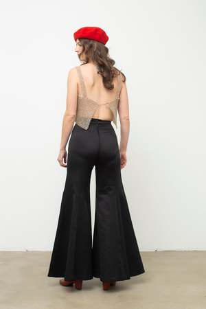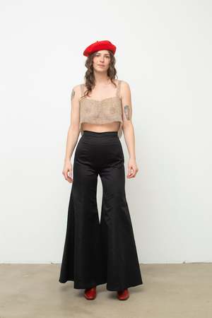- Handmade Fabric unknown, likely Poly - Back zipper and clasp closure Size fit Fits like an XS Waist: 25" Hips: 37" Rise: 13" Inseam: 32"