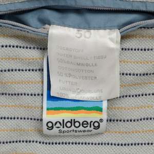 goldberg (Germany) Plain Weave Saddle Sleeve Nehru Bomber Kyanite : L SOS | sundazed.io/products/goldberg-plain-weave-saddle-sleeve-nehru-bomber-kyanite-l Brand: goldberg Origin: Germany Condition: New Vintage (mint condition or new without tags) Look: Department: Men Tag: 50 Size: L Color: Blue Fabric: Woven Shell: Cotton Blend Composition: 50% Baumwolle 50% Polyester Lining: Cotton Type: Jacket Fit: Classic Style: Bomber Length: Short Sleeve Type: Saddle Sleeve Length: Long Neckline: Collared Collar: Nehru Pockets: Angled Welt Closure: Zip Features: Inner Pockets Measurements (cm): Chest: 57 Length: 67 Shoulder: 42 Sleeve: 65 Hem: 51 SKU: 001078