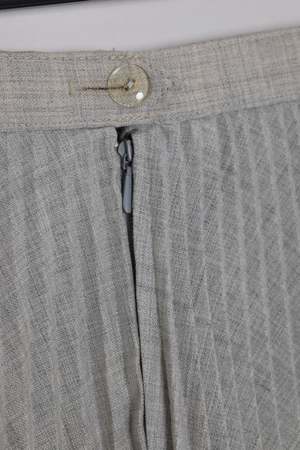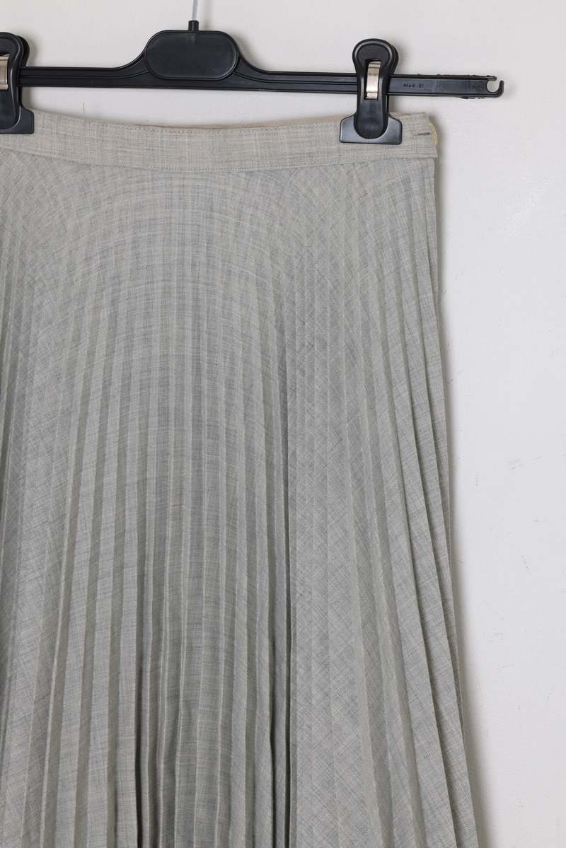 We are currently operating in a pre-scaling phase, during which the scope of our vintage archive has expanded beyond what can be listed at human speed. Only a token fraction of the inventory is visible online, not for lack of supply, but because an inconvenient commitment to perfectionism. The practical solution is to request access to our Google Drive. There is, incidentally, an upside to this arrangement: direct access, special attention, preferred pricing, and quantity-based considerations. New drops are added to the Drive on a daily basis, ensuring ample selection. All that is required is a reference to the image IDs. From there, we provide an elevated level of service: photos edited to approximate reality, additional images, and, where applicable, preferred pricing with quantity-based concessions. Bundles are where the value appears; the more pieces, the more flexible the pricing. After a half-decade sabbatical from fashion, I'm cautiously resurfacing & I felt it was time to reconnect. I moved to Europe a few years ago & began collectsing vintage with the field discipline of an anthropologist & the denial of a high-functioning hoarder. I currently have over 100,000 pieces sitting in a warehouse, because moderation has never been my strong suit. What began as compulsion is now a side project. I'm firmly in the pre-revenue chapter of the memoir - 1,000 sales, & high morale. The broader archive skews larger, stranger, & more historically pointed-East & West German rarities, bureaucratic glamour, Soviet institutional wear, industrial archaeology-rich in Trevira, Diolen, Terylene & mid-century state textile programs, & an elegy in garments from the DACH region & beyond. The collectsion is mostly a Cold War capsule wardrobe, institutional tailoring, state-issued, regional cooperatives & rural ateliers, white labels from the department store era, exceptional knitwear, socialist leathers, the zenith of Parisian fur craft, selectively preserved tweed skirts, rare 1960s mod, exaggerated '70s collars, German-cut blouses, unusually constructed denim, essentially the entirety of the 1970s, when even institutional garments had the decency to be well made. If integrity were woven, you'd find more of it in a 1978 poly-wool blend than in most of today's designer runways. Eventually, this evolves into a full-scale operation-complete with the token NYC storefront for aesthetic credibility. Given that about 70% of you are ordering from New York, it seems reasonable to ship our 50 pallets there & open a labyrinth of "true vintage" to get lost in. Scaling, of course, requires capital. I'm well aware that most of you don't have any, but statistically speaking, out of the millions who drift through here, it is statistically probable that one of you possesses both interest & solvency. Type us into Google. Everything is there, including a contact form. SUNDAZED & OUTSIDE SOCIETY Measurements: Waist 30 cm, Length 67 cm Waist 11.81 in flat measure, approximately 23.62 in circumference; Length 26.38 in This is a mid-length, high-waisted pleated skirt constructed from a synthetic blend labeled with Terylene polyester and viscose content. It was produced approximately between the mid-1960s and mid-1970s, supported by the fiber labeling, pleating method, and construction techniques. The textile is a lightweight-to-medium woven with sufficient thermoplastic content to support heat-set pleats, resulting in stable, narrow folds across the skirt body. Construction is industrial, with overlocked seams, a machine-set zipper, and a waistband finish consistent with mid-market European production. The garment represents the integration of synthetic fiber technology into everyday womenswear, particularly the adoption of permanent pleating systems that reduced maintenance while preserving structured form. I. Primary Materials, Textile Structure & Fabric Performance The primary textile is a woven blend of Terylene polyester and viscose, as indicated by the surviving label fragment. The polyester component enables thermoplastic behavior, allowing pleats to be permanently set through heat treatment, while viscose contributes softness and reduces the stiffness typical of pure polyester. The fabric is relatively lightweight with a fine, slightly textured weave that supports repeated narrow pleating without excessive bulk. There is no full lining, and internal structure relies entirely on the outer cloth and waistband. The textile retains its pleated configuration with minimal relaxation, indicating effective heat setting. Minor surface linting and slight softening of fold edges are present but do not compromise structural performance. The fabric remains dimensionally stable, with no significant stretching or distortion observed. II. Construction Method, Pattern Development & Production Discipline The skirt is produced through industrial methods, with machine stitching throughout and overlocked seam finishes. The pleating process appears to have been executed prior to or during assembly using heat-setting techniques, standard for polyester blends of the period. Pattern development is straightforward, with the skirt body formed from pleated panels or a continuous pleated length attached to a waistband. The waistband is applied as a separate unit, enclosing the upper edge and stabilizing the pleated structure. Stitching is regular and consistent, reflecting factory-level production rather than hand-finished garment construction. The assembly sequence follows conventional practice: pleated body prepared, side seam or back seam closure inserted, and waistband attached. There is no evidence of bespoke alteration or complex pattern manipulation. III. Structural Design, Silhouette Engineering & Technical Resolution The silhouette is defined by a high waist and a full, evenly distributed flare created by narrow knife pleats. The pleats expand from the waistband, providing volume and movement while maintaining vertical alignment when at re