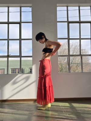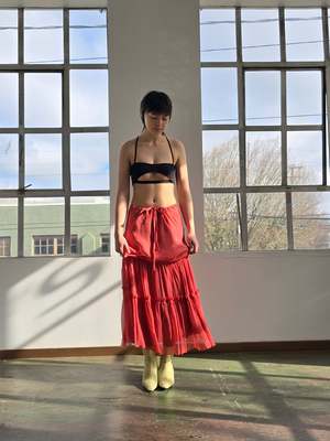 Vintage Diane von Furstenburg Y2K sour cherry red tiered silk skirt. Lined, with drawstring waist. Excellent condition, marked size 2. MEASUREMENTS (in inches) 2632 in waist (drawstring) 38 in hips 37 in length MATERIALS 100% silk, lined All items are FINAL SALE. Vintage pieces are pre-loved and may come with minor flaws; condition will be noted in the description. Type: Skirt