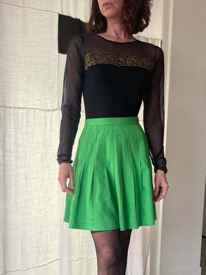 1990s Deadstock Black Gold Appliqu Sheer Sleeves Bodysuit with open scooped back and g-string snap closure. Label Partners | Meryvn's | Made in USA Size Large (fits like a Small / Medium) Measurements Chest 32-34" | Waist 25-27" | Sleeve Length 23" Condition Excellent - deadstock / new without tags Model is 5'4" Size 2-4 for reference