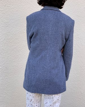 Soft cozy cornflower blue lined single breasted blazer. MEASUREMENTS (in inches) 40 bust 36.5 waist 42 hips 30 length MATERIALS Wool/Nylon Blend
