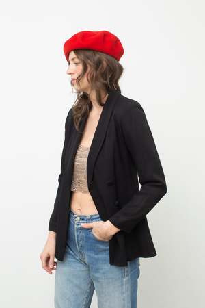 - 56% Rayon 44% Acetate - Brand: J. Taylor New York - Double Breasted cloth buttons - Dry Clean Size fit Fits like a XS/S Petite Bust: 32"