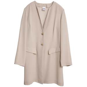 L-KOLTTU OY (Finland) Crpe Weave Collarless Armseye Swagger Coat Sand : L SOS | sundazed.io/products/l-kolttu-oy-crepe-weave-collarless-armseye-swagger-coat-sand-l Brand: L-KOLTTU OY Origin: Finland Condition: New Vintage (mint condition or new without tags) Look: Best Years of My Life Department: Women Tag: FIN 40 D 42 Size: L Color: Beige Fabric: Crpe Shell: Polyester Type: Coat Fit: Oversized Style: Swagger Length: Mid-Length Sleeve Type: Set In Sleeve Length: Long Neckline: Collarless Pockets: False Cuffs: Invisible Hem Seams: Armseye Construction: Closure: Button Buttons: Pearlescent Features: Shoulder Pads Measurements (cm): Chest: 56 Length: 91 Shoulder: 44 Sleeve: 61 Hem: 60 SKU: 000311