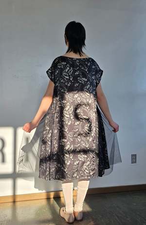 Vintage Lilith oversized gray dress with black tulle detailing. Pull-over styling and A-line shape. Excellent condition. MEASUREMENTS (in inches) Bust: 48 in Waist: 56 in Hips: 68 in Length: 41 in MATERIALS 100% rayon, poly tulle All items are FINAL SALE. Vintage pieces are pre-loved and may come with minor flaws; condition will be noted in the description.