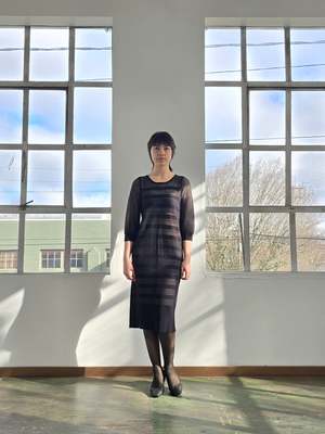 Vintage 2000s Sonia by Sonia Rykiel black knit dress with alternating mesh stripes. Mesh panels are slightly sheer. Excellent condition, marked size S. MEASUREMENTS (in inches) Bust: 38 in Waist: 36 in Hips: 38 in Length: 43 in MATERIALS Viscose/poly/cotton All items are FINAL SALE. Vintage pieces are pre-loved and may come with minor flaws; condition will be noted in the description.