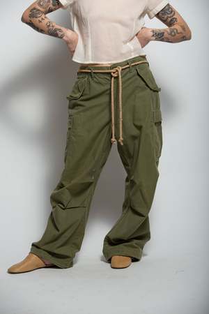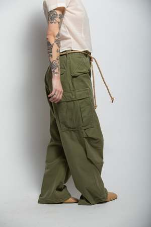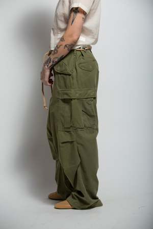 OG 107. Fits like a modern size: M/L 50% Cotton 50% Nylon Waist: 34" Rise: 13" Hips: 48" Inseam: 27"