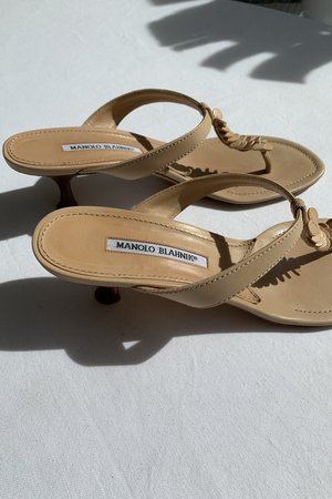 vintage manolo blahnik kitten heels. marked size 41 1 / 2" 2" heel made in italy sole length measures 10.5" please note: vintage items are one of a kind. previous wear like stains, fading, or holes add to the character of a vintage garment.