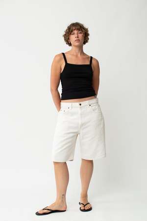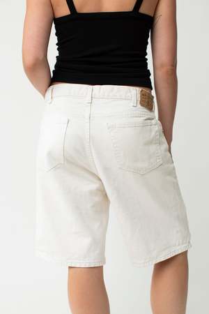 Comfortable and cool, what more could a gal want? - Modern Size: M/L - 100% Cotton We think the cut-off jorts look best baggy, low-slung. Keep in mind the waist is hitting the model at her low waist/high hip, not her natural waist. The model's measurements are waist: 29.5" and hips: 41". Garment measurements: Waist: 35" Hips: 47" Rise: 13.5" Inseam: 10.5"