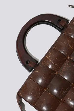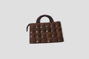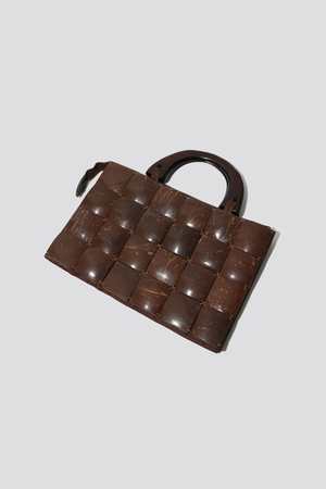 Hard shell purse in Coco. Lined with zipper. Measures 12" x 10".